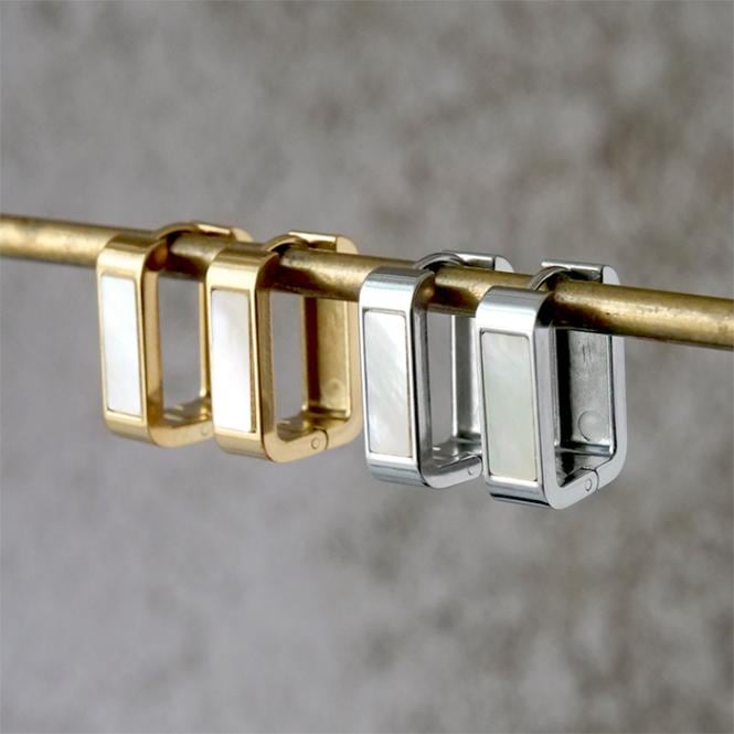 金属アレルギー対応 ステンレス ピアス 【172. レクタングル フープ ホワイトシェル ピアス】 キャッチレス メール便送料無料...