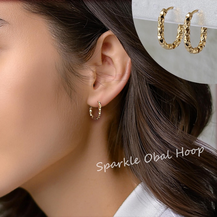 金属アレルギー対応 【234. オーバル スパークル フープピアス 1ペア】 ステンレス ピアス マット シンプル キラキラ