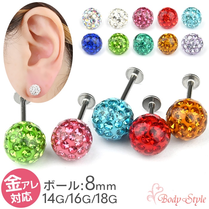 耳たぶ ピアス 16g 14g 18g 8mm つけっぱなし ボディピアス 軟骨ピアス 軟骨 パヴェ ボール 医療用 ステンレス ...