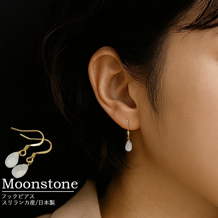 ムーンストーン 平面ドロップカット フックピアス 天然石 6月誕生石 スリランカ産 日本製 シラー アクセサリー レディース フォ...