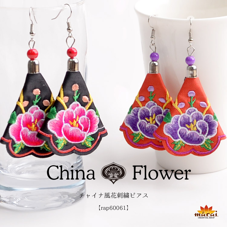 華やかに、大胆に。チャイナ風花刺繍ピアス