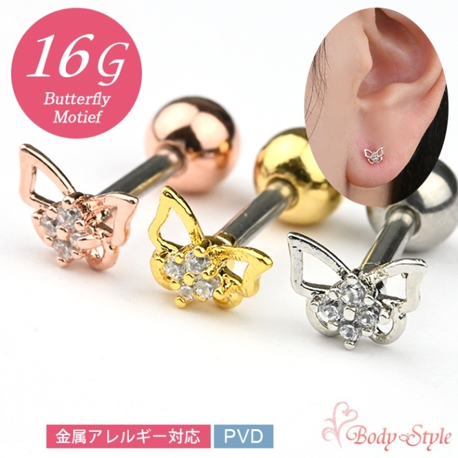 ボディピアス 16G 蝶 バタフライ パピヨン 軟骨ピアス おしゃれ かわいい 軟骨 サージカルステンレス 金属アレルギー対応 ス...