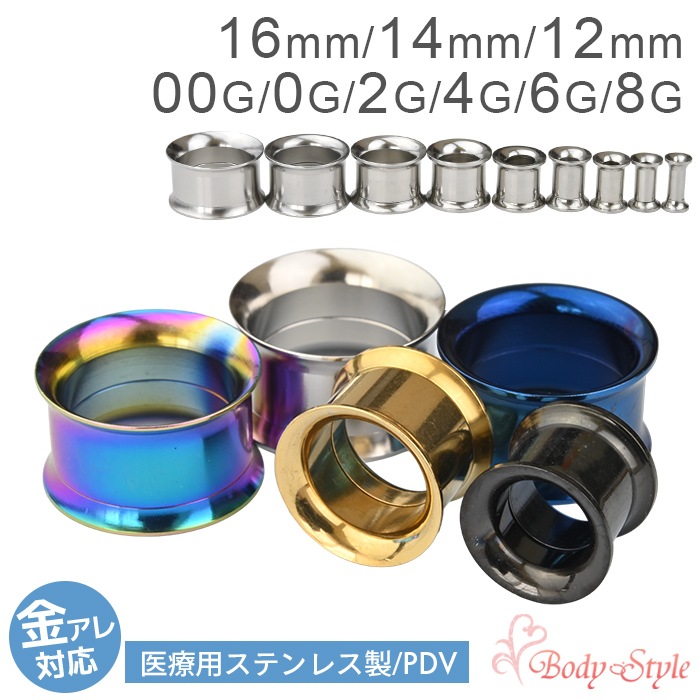 フレッシュトンネル 16mm 14mm 12mm 00G 0G 2G ボディピアス 00g サージカルステンレス 拡張 ラージホー...