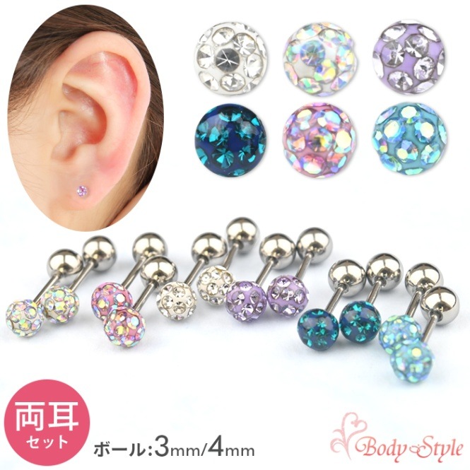 【両耳セット】耳たぶ ファッションピアス 3mm 4mm つけっぱなし ピアス パヴェ ボール 医療用 サージカルステンレス 金属...