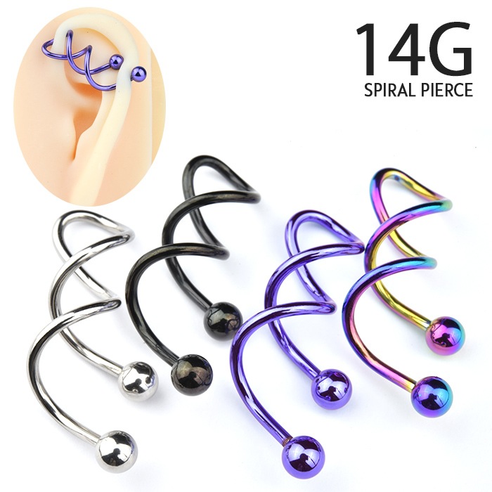 スパイラル バーベル 14g ボディピアス ツイスト ツイスター シルバー ブラック パープル レインボー サージカルステンレス ...