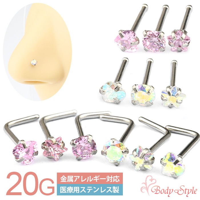 鼻ピアス スクリュー ボディピアス 20g 20ゲージ 鼻ピ ノーズピアス サージカルステンレス 金属アレルギー対応 シンプル ...