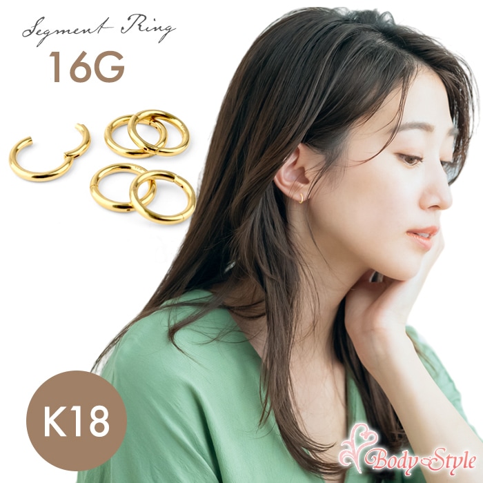 セグメントリング 18金 k18 ゴールド 16G リングピアス ボディピアス 耳用 耳たぶ イヤーロブ 軟骨用 トラガス ヘリッ...