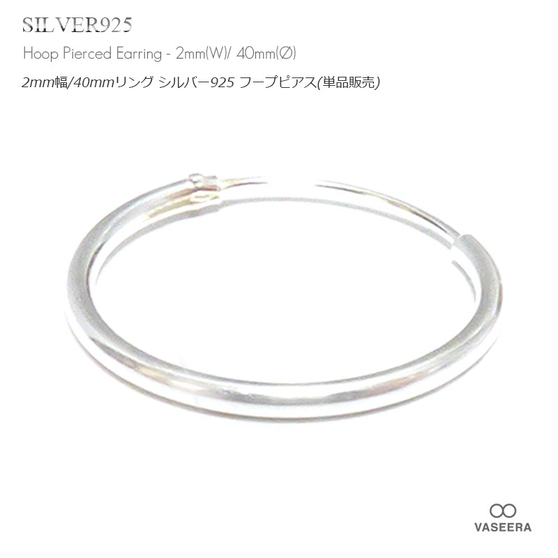 【単品販売(一個)】 2mm幅 40mmシンプル プレーン 大型 リング シルバー925 フープ ピアス 【SILVER925 /...