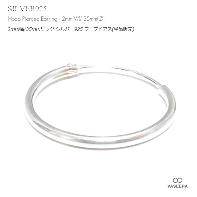 【単品販売(一個)】 2mm幅 35mmシンプル プレーン 大型 リング シルバー925 フープ ピアス 【SILVER925 /...