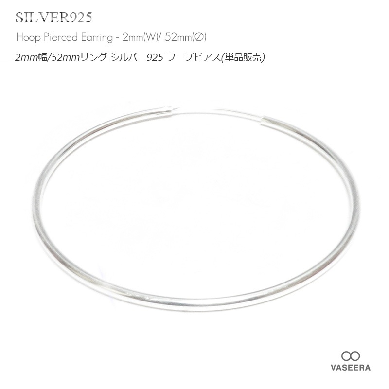 【単品販売(一個)】 2mm幅 52mmシンプル プレーン 大型 リング シルバー925 フープ ピアス 【SILVER925 /...