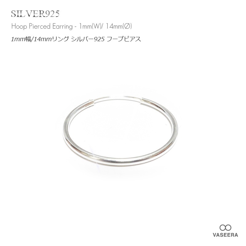 【単品販売(一個)】 1mm幅 14mmシンプル プレーン リング シルバー925 フープ ピアス 【SILVER925 /リング...