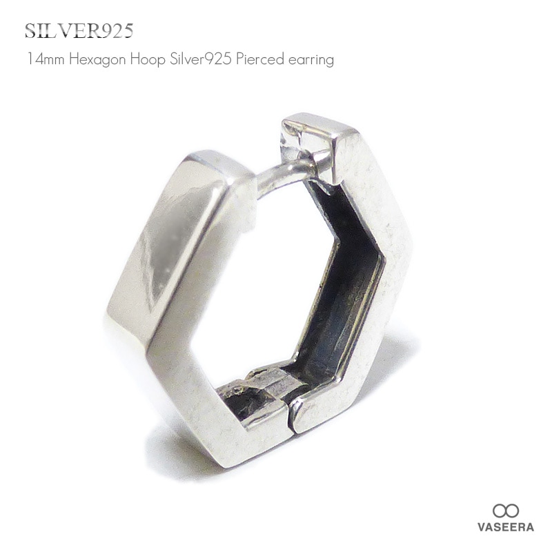 【単品販売(一個)】 3.5mm幅 六角形型 鏡面シンプル シルバー925 フープピアス 【シルバーピアス / SILVER92...