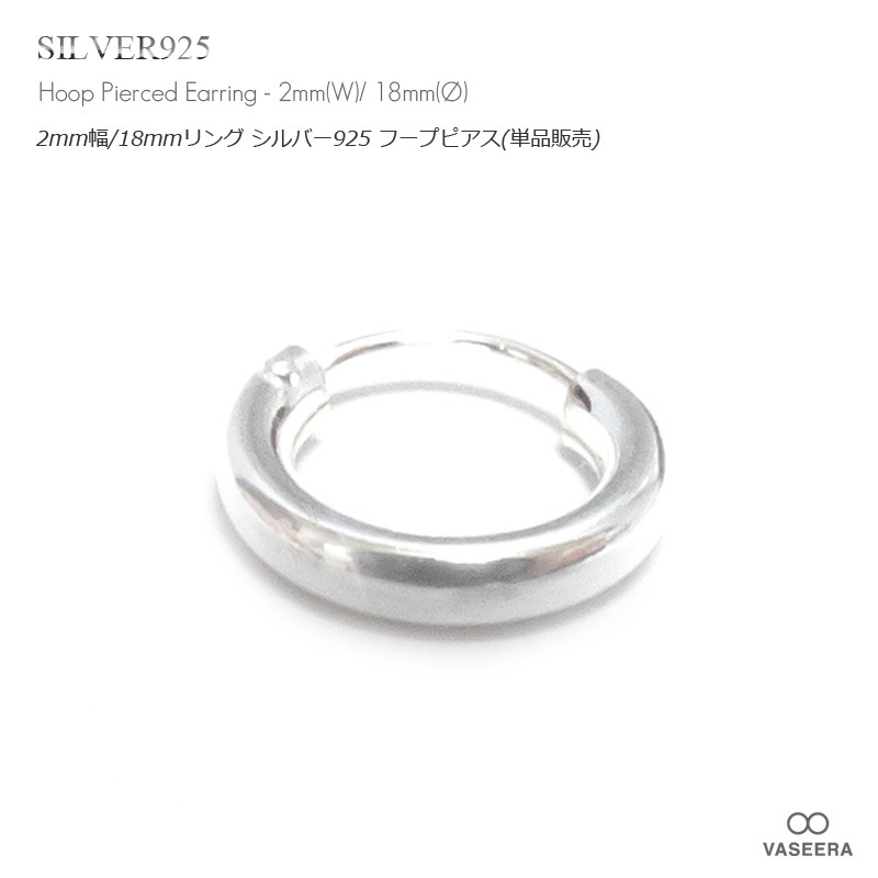 【単品販売(一個)】 2mm幅 18mmシンプル プレーン リング シルバー925 フープ ピアス 【SILVER925 /リング...