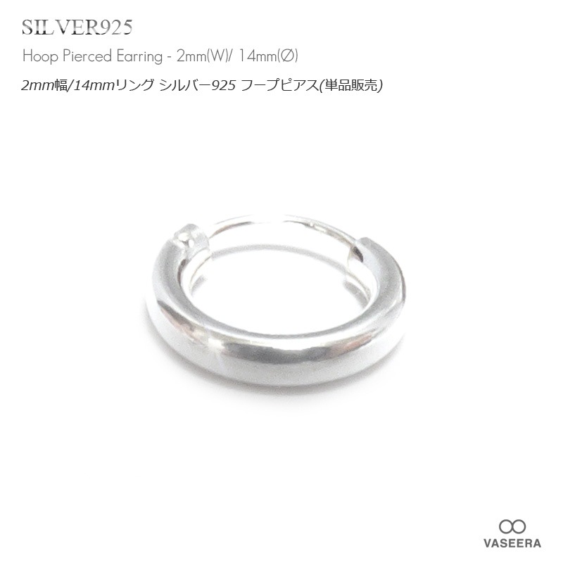 【単品販売(一個)】 2mm幅 14mmシンプル プレーン リング シルバー925 フープ ピアス 【SILVER925 /リング...