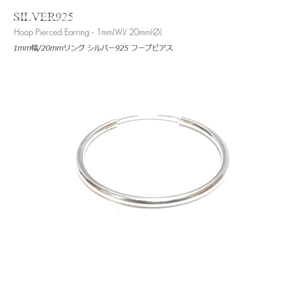 【単品販売(一個)】1mm幅(細身) 20mmシンプル プレーン リング シルバー925 フープ ピアス 【SILVER925 /...