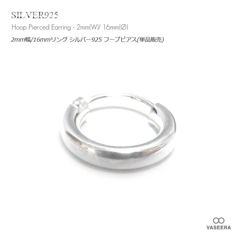 【単品販売(一個)】 2mm幅 16mmシンプル プレーン リング シルバー925 フープ ピアス 【SILVER925 /リング...