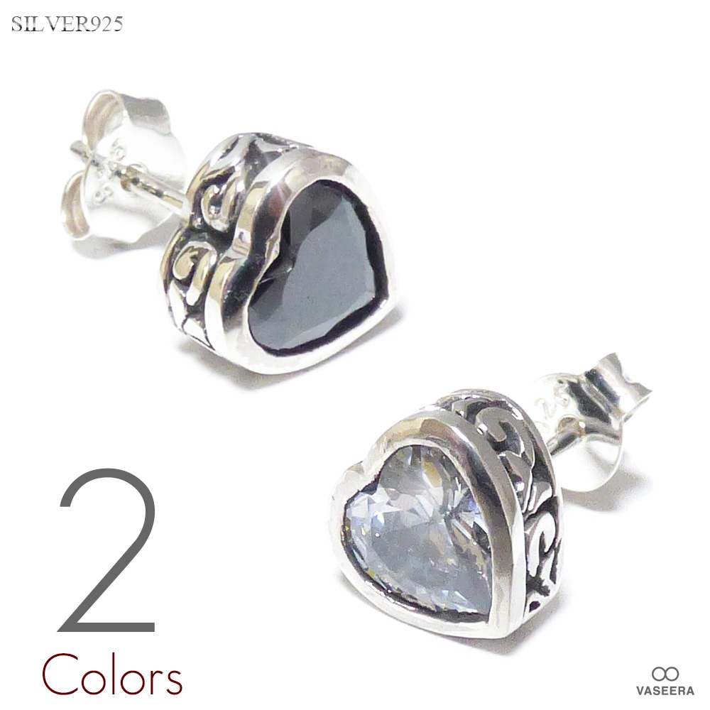 【単品販売(一個)】 8mm ハート型カットジルコニア(クリア/ブラック) シルバー925 スタッドピアス 【シルバーピアス /...