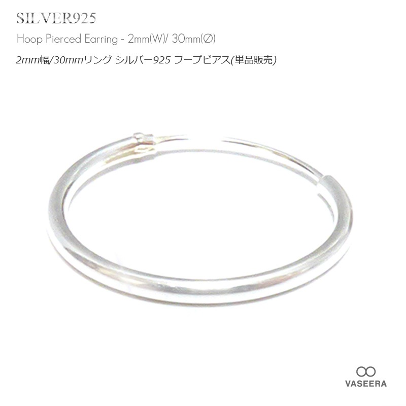 【単品販売(一個)】 2mm幅 30mmシンプル プレーン リング シルバー925 フープ ピアス 【SILVER925 /リング...