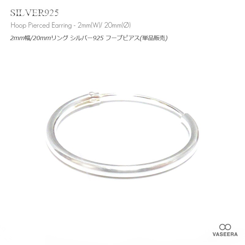 【単品販売(一個)】 2mm幅 20mmシンプル プレーン リング シルバー925 フープ ピアス 【SILVER925 /リング...