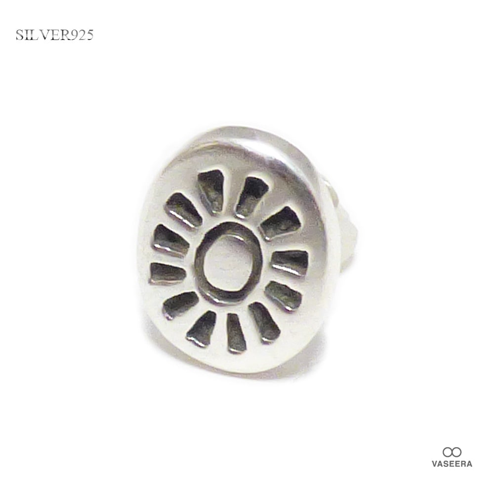 【単品販売(一個)】 ネイティブ 12mm幅 サン(太陽)シンボル 楕円型 シルバー925 スタッドピアス 【シルバーピアス /...