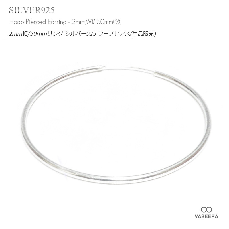 【単品販売(一個)】 2mm幅 50mmシンプル プレーン 大型 リング シルバー925 フープ ピアス 【SILVER925 /...