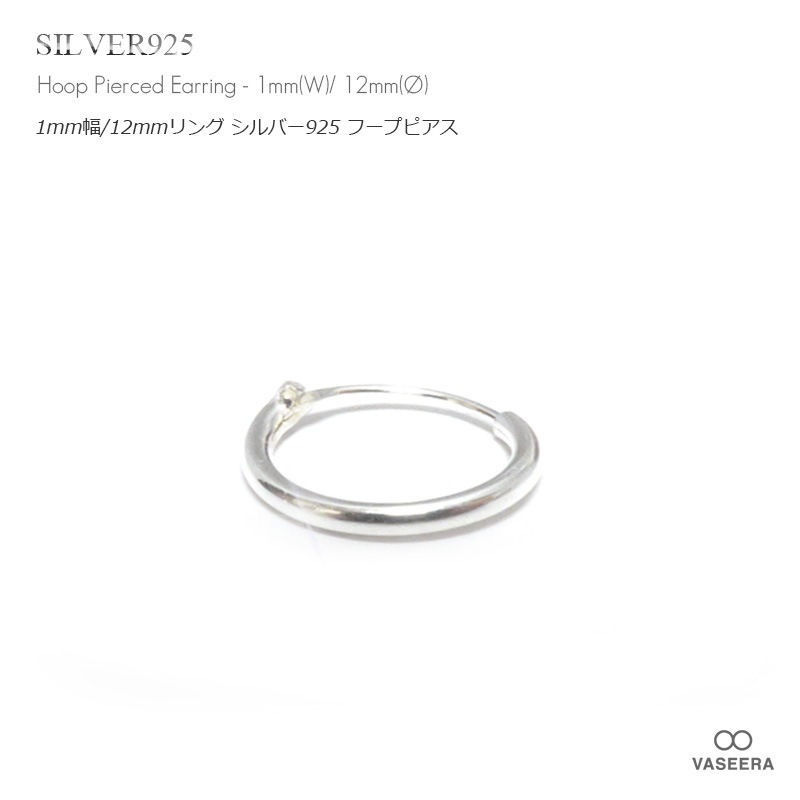 【単品販売(一個)】 1mm幅 12mmシンプル プレーン リング シルバー925 フープ ピアス 【SILVER925 /リング...