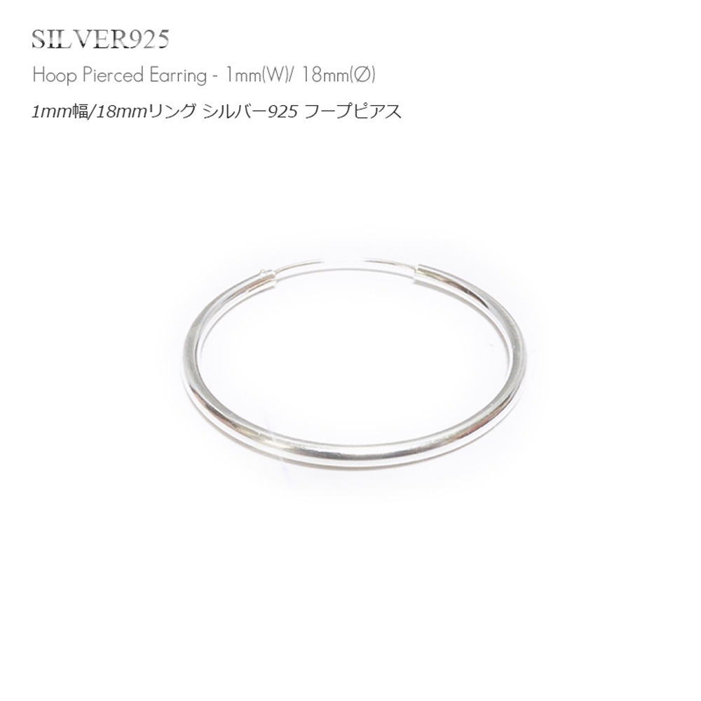 【単品販売(一個)】1mm幅(細身) 18mmシンプル プレーン リング シルバー925 フープ ピアス 【SILVER925 /...