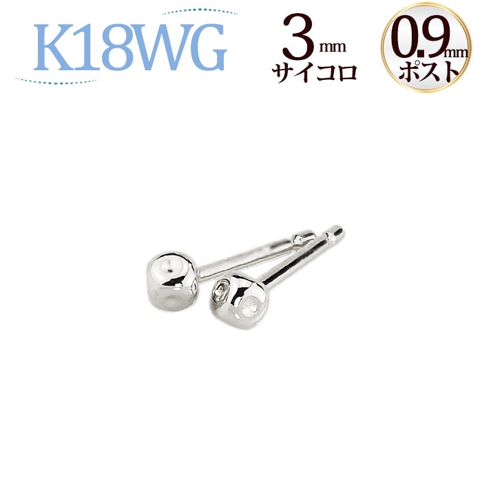 K18WG 3mmサイコロピアス(0.9mm芯)