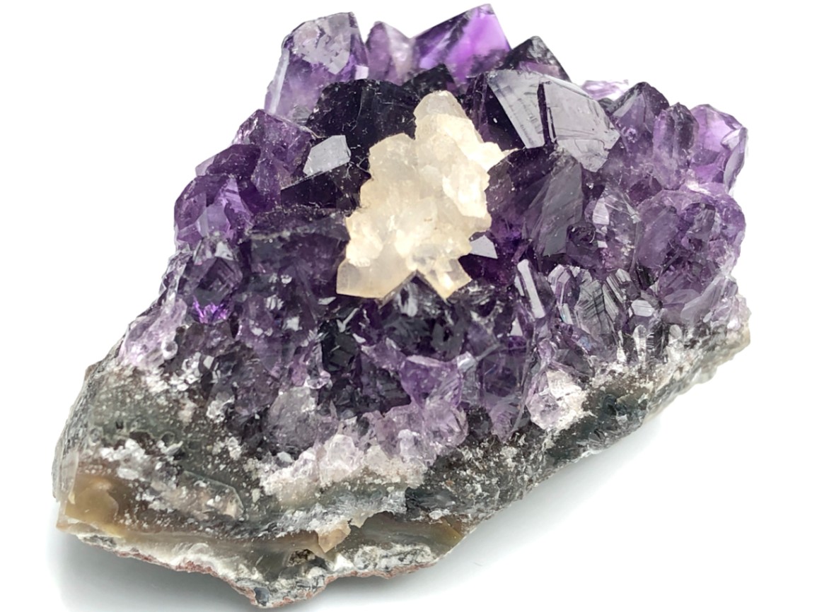 【1点物】希少!★輝きを放つ高品質、高発色★ウルグアイ産★天然石/カルサイト共生アメジスト(amethyst/紫水晶)原石クラスタ...