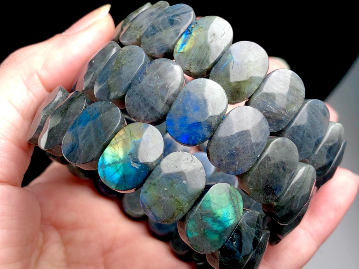 レア!★美しいレインボーシラーと艶★マダガスカル産★天然石ブレスレット/ブラックラブラドライト(Labradorite/曹灰長石)...