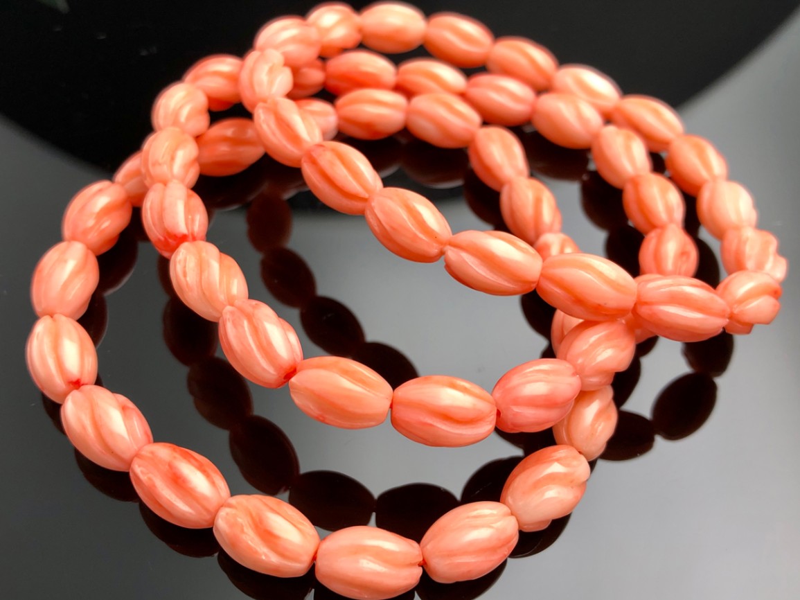 天然石ブレスレット/ピンクコーラル(珊瑚/coral)/ツイストライスカット/7×10mm/1本【天然石/パワーストーン】【アメリ...