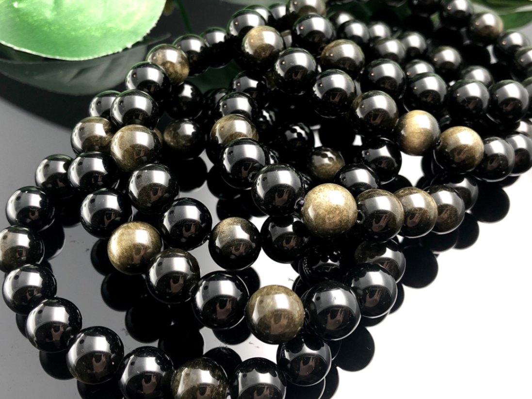 キラリと輝くゴールドの光★アメリカ産/5A/天然石ブレスレット/ゴールデンシーンオブシディアン(ゴールデンオブシディアン/黒曜石/...