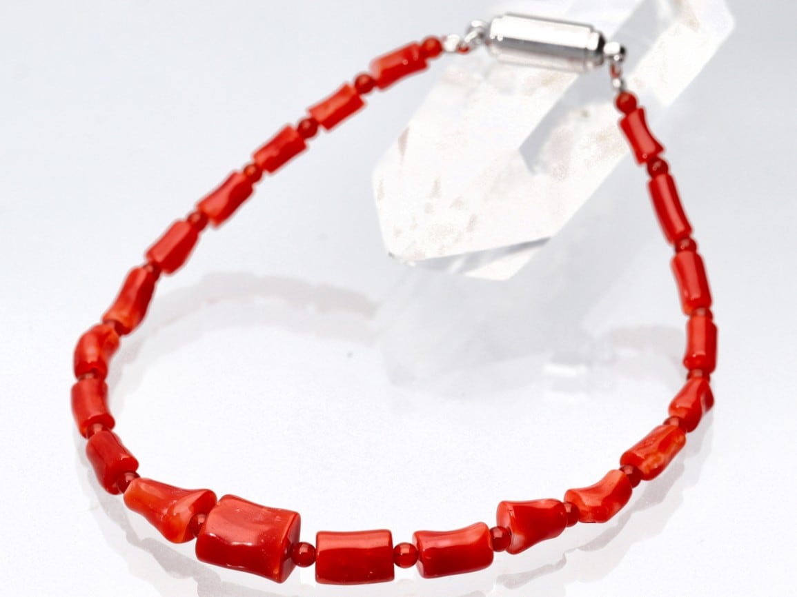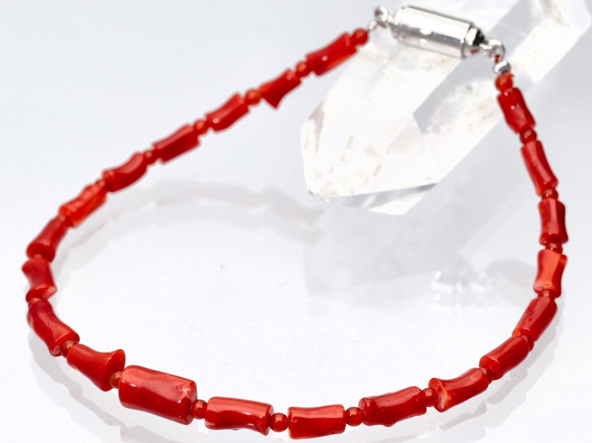 【1点物】鮮やかなレッドカラー★日本 高知県土佐湾産★sv925製マグネットタイプ★天然石ブレスレット/血赤珊瑚(サンゴ/さんご/...