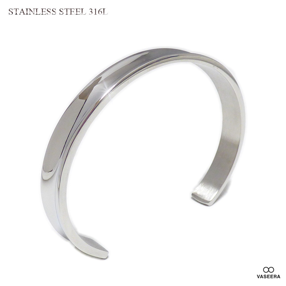8mm幅 3mm厚 鏡面リバースハーフラウンド(逆甲丸)仕上げ ステンレス バングル 【ステンレス・スチール316L/S.stee...