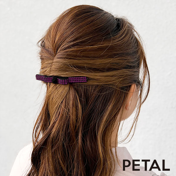 NEW 品のあるビジューをあしらった リボンバレッタ【PETAL MARKET】