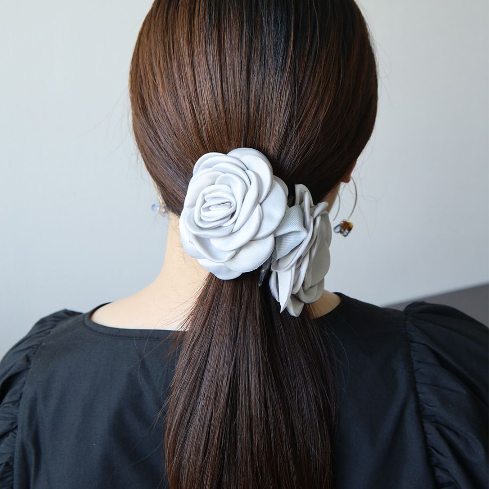 QUI新作 ボリュームのあるリボンとフラワーのシュシュ 【PETAL MARKET】