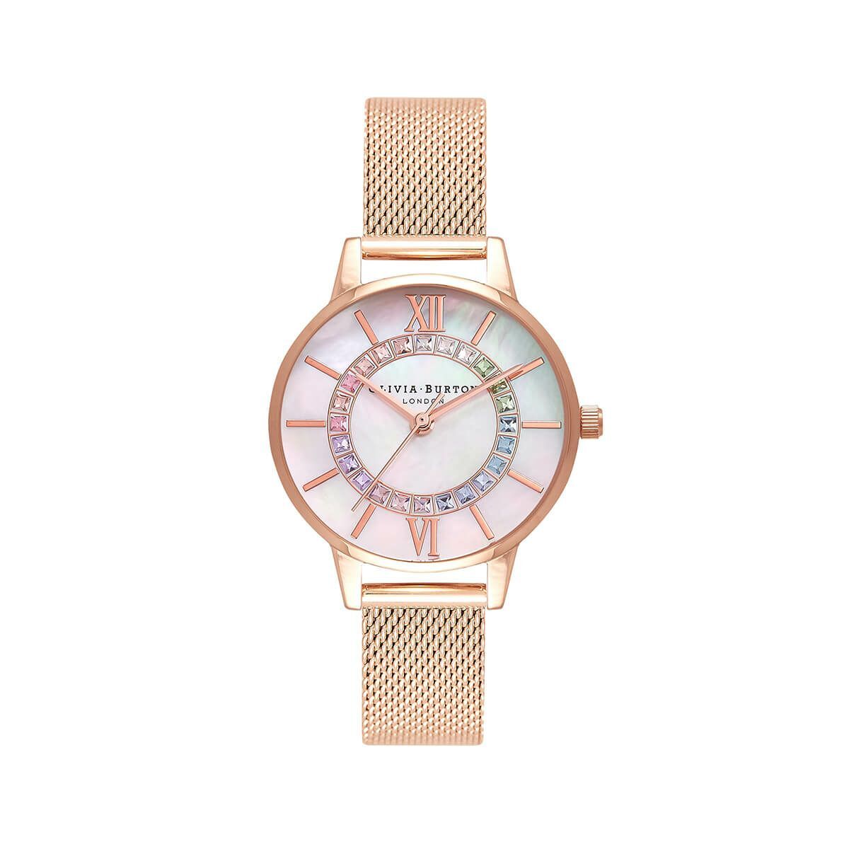 OLIVIA BURTON|Wonderland ワンダーランド マザーオブパール レインボー ローズゴールドメッシュ