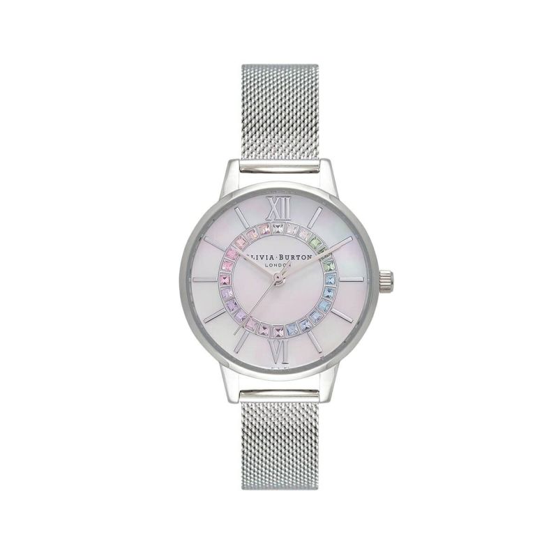 OLIVIA BURTON|Wonderland ワンダーランド マザーオブパール レインボー シルバーメッシュ