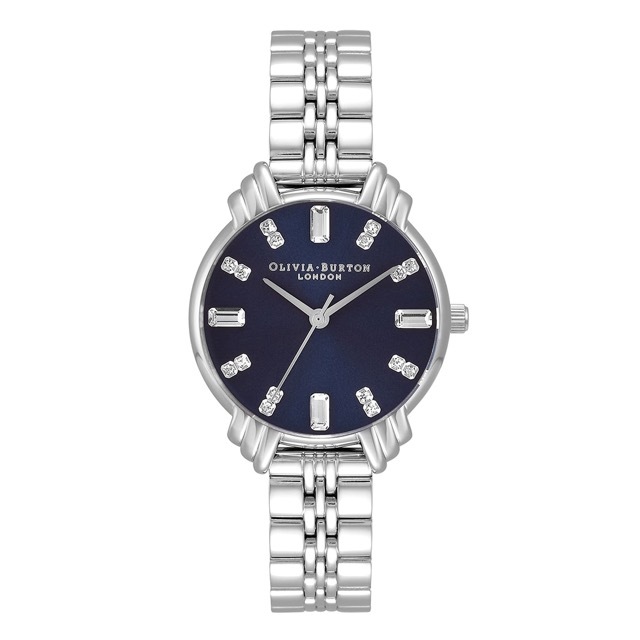 OLIVIA BURTON|Art Deco アールデコ シルバー バジェットストーン ブレスレット ネイビーダイヤル