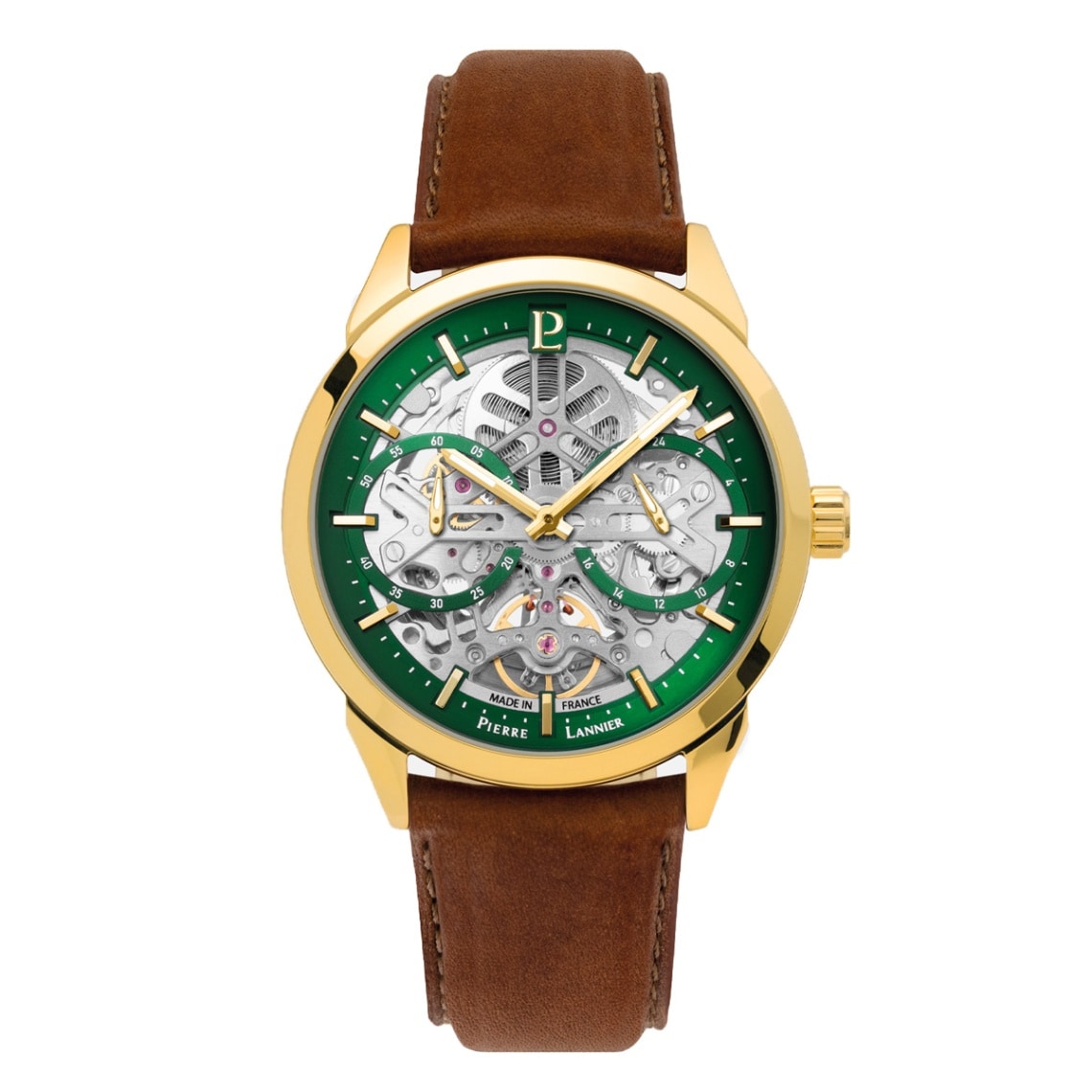 Monarck モナーク 自動巻き メンズ 腕時計 スケルトン 革ベルト ゴールド グリーン 文字盤 ブラウン