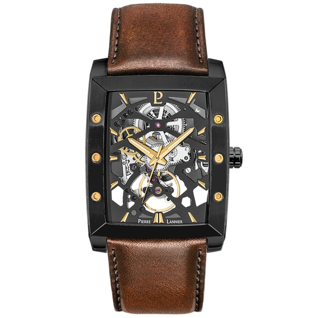 HECTOR ヘクター 自動巻き メンズ 腕時計 革ベルト スケルトン スクエア ブラック ブラウン