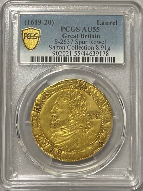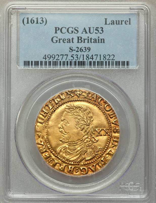 アンティークコイン グレートブリテン ジェームズ1世 ゴールドローレルND (1619-20) PCGS-AU55 Mark an...