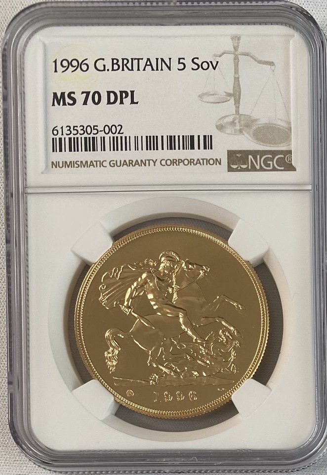 【動画あり】グレートブリテン 1996年エリザベス5ポンドプルーフ金貨NGC-MS70DPL