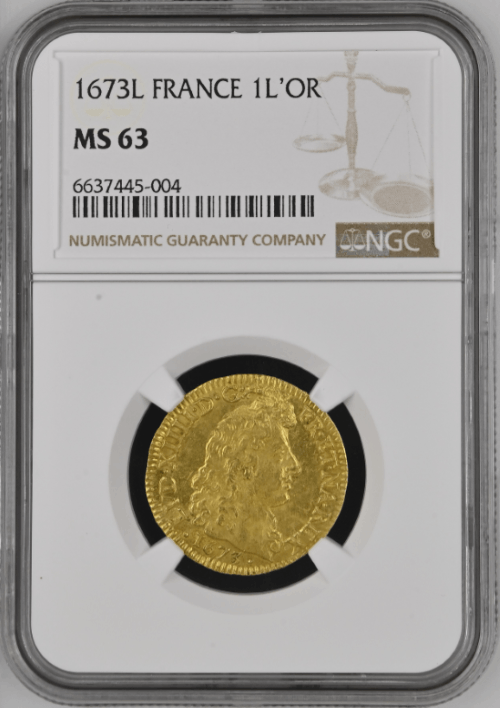 【レア度2-R2】フランス 1673-L年 ルイ14世 1ルイドール金貨 NGC-MS63
