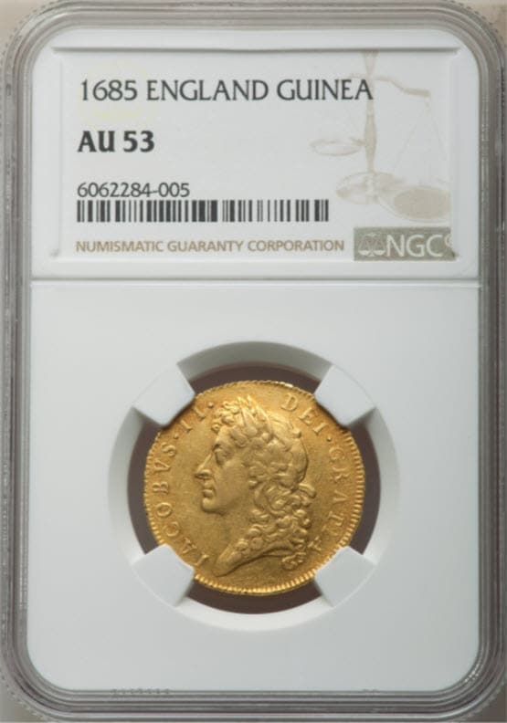 グレートブリテン 1685年 ジェームズ2世 1ギニー金貨 NGC-AU53