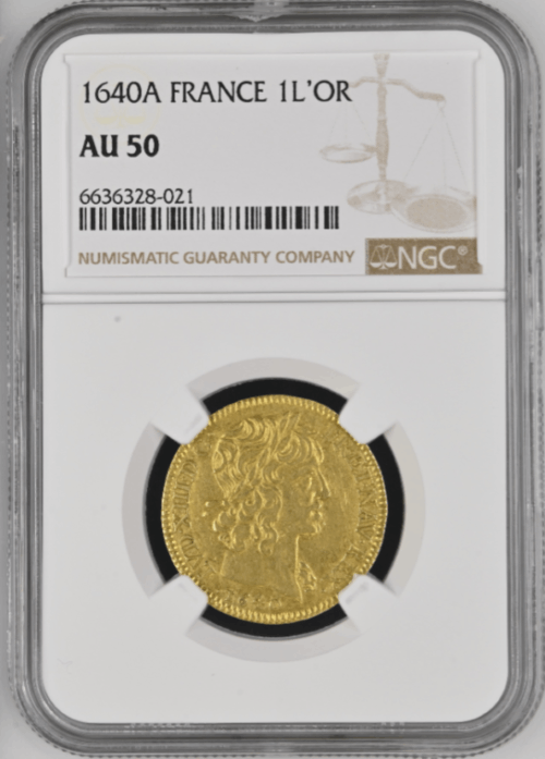 【レア度2-R2】フランス 1640-A年 ルイ13世 1ルイドール金貨 NGC-AU50