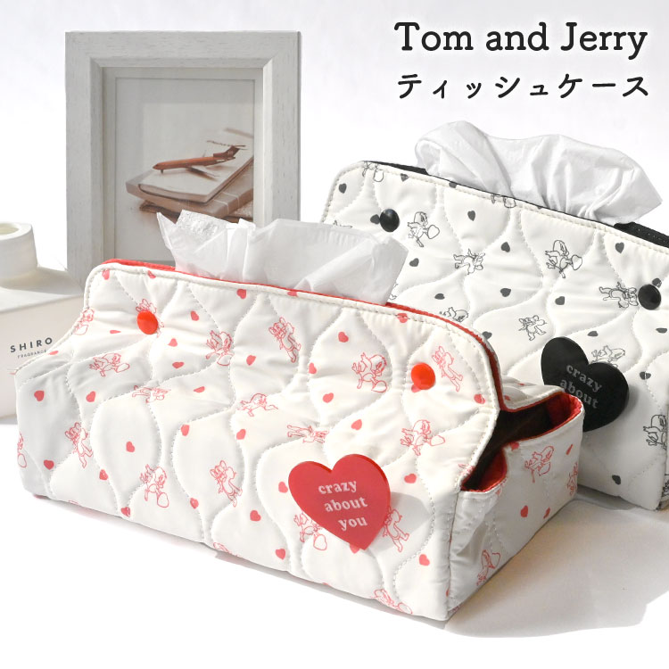 ティッシュカバー トムとジェリー キルティング キルト 白 ホワイト ハート ティッシュケース ティッシュボックスカバー インテリ...
