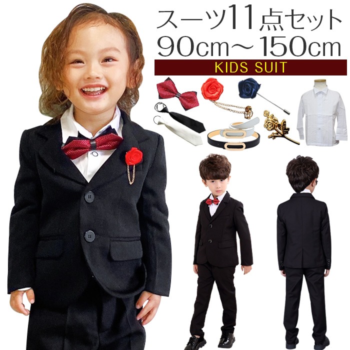 正午まで当日発送(土日祝除く) 送料無料 男の子 女の子 子供スーツ 11点セット ジャケット/パンツ/ベスト/ワイシャツ/ネクタ...