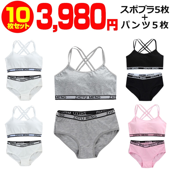 【訳あり】正午まで当日発送(土日祝除く) 送料無料 子供下着セット スポーツブラ パッドなしとパンツ10点セット 上下セット下着 ...