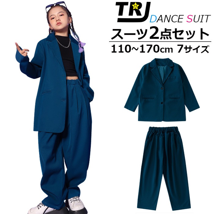 営業日は正午まで当日発送 キッズ ダンススーツ セットアップ 上下2点セット オーバーサイズ K-POP衣装 パンツスーツ ブルー...